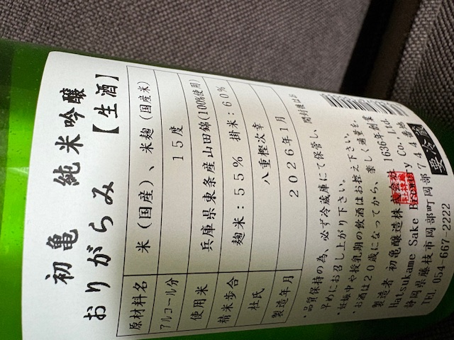 「おりがらみ」・・・酒を搾る際に出る酒かすを「おり」として絡ませる、この時期ならではの逸品で、絡んだ「おり」がシルキーな質感を添えます。