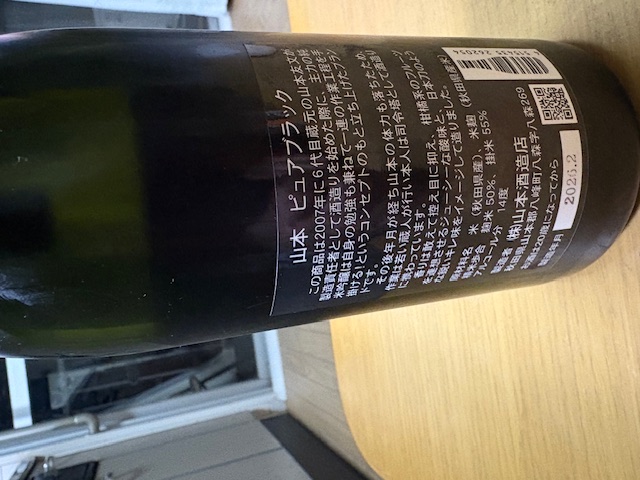 漆黒のラベルに、文字の色を変えることで、酒質や規格を区別しているのですが、今回は久しぶりの「山本飲酒」だったので、原点に立ち返る意味で、代表作ともいわれる、黒地に金文字の、「ピュアブラック」にしました。